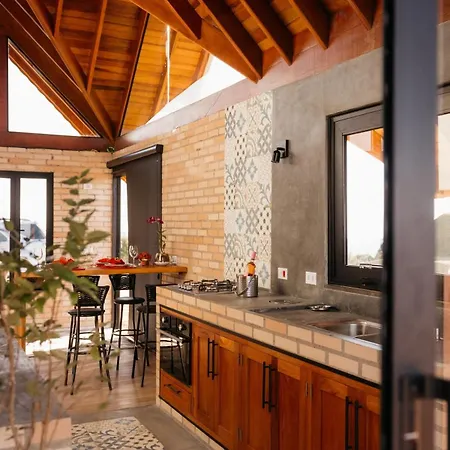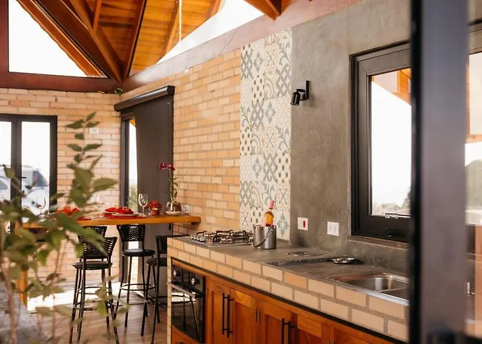 The 1-bedroom Chale Alem Do Horizonte Villa includes a fully-equipped kitchen with a microwave oven, tea and coffee making equipment on the premises. Bicycles are provided for rent, while a hot tub are available in the spa section.